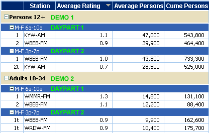 Example with two demos and two dayparts...